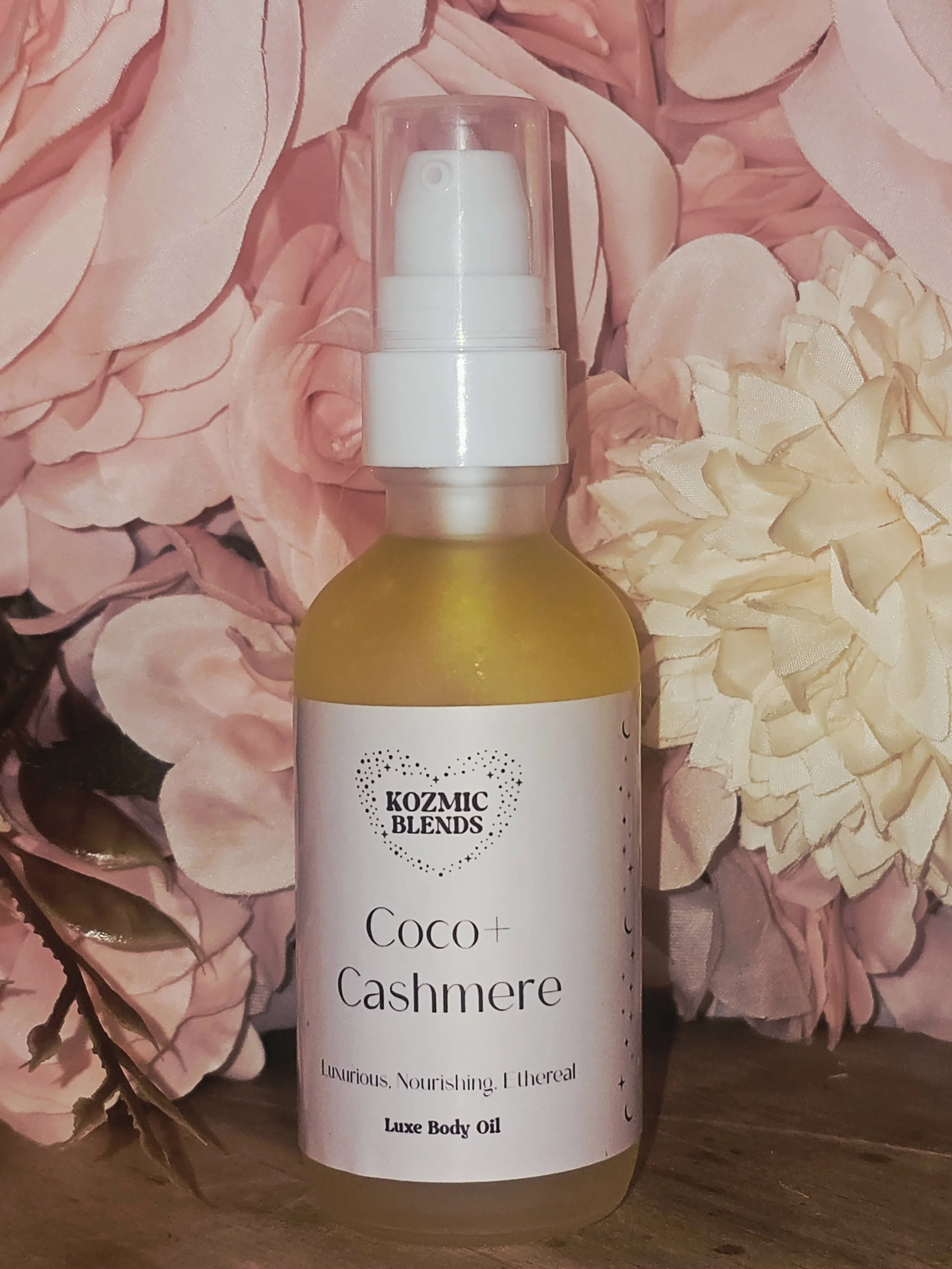 This luxe body oil, handcrafted by Kozmic Blends, is a sparkling veil of lychee + sugared vanilla β airy, luminous, and irresistibly Kozmic. The nourishing formula is infused with Kozmic Blends house botanical extract blend + 98% organic oils.